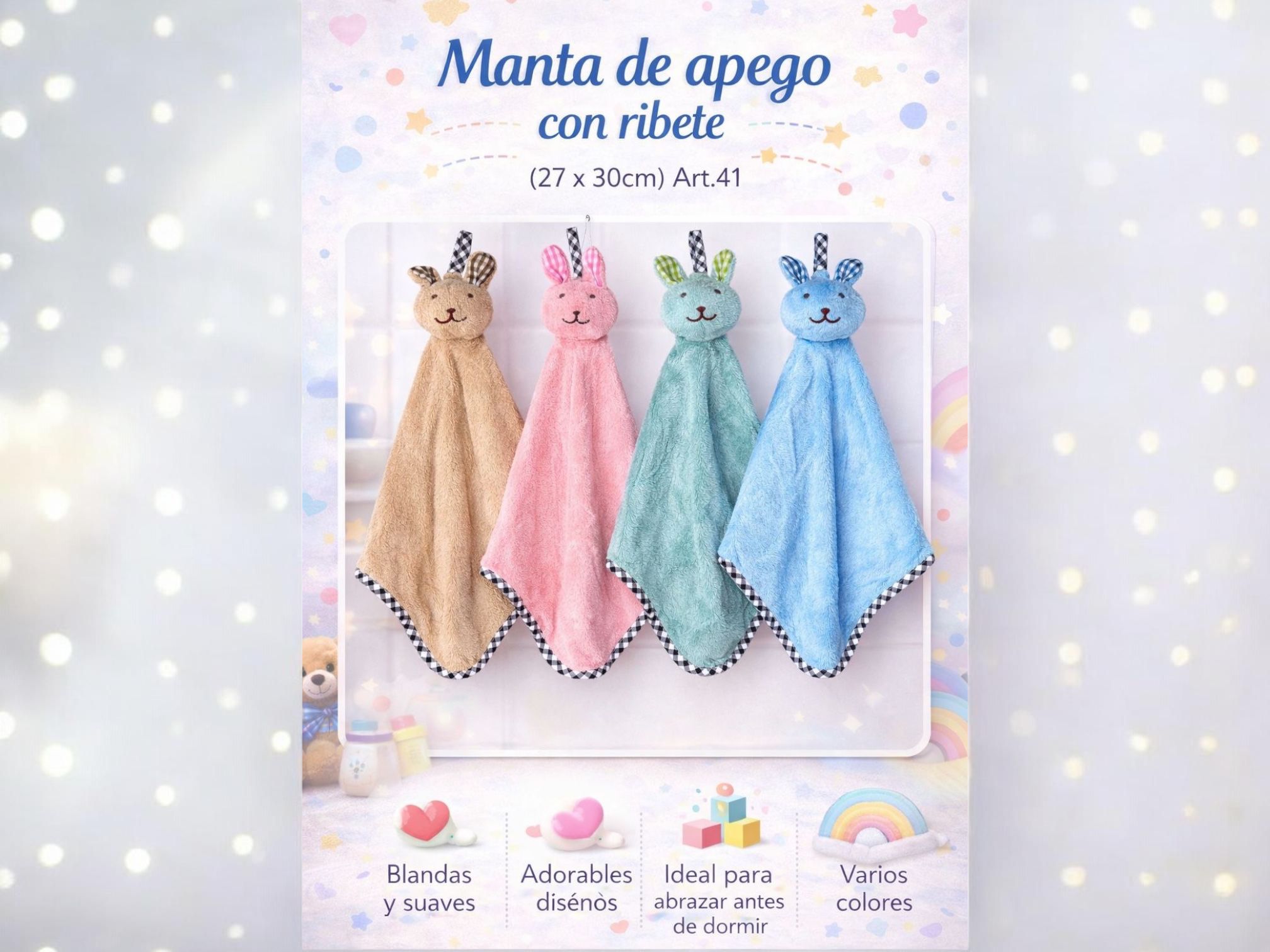 Manta de Apego con muñeco con ribete (Art.41) “Andy” Surtido de colores Pack x 6