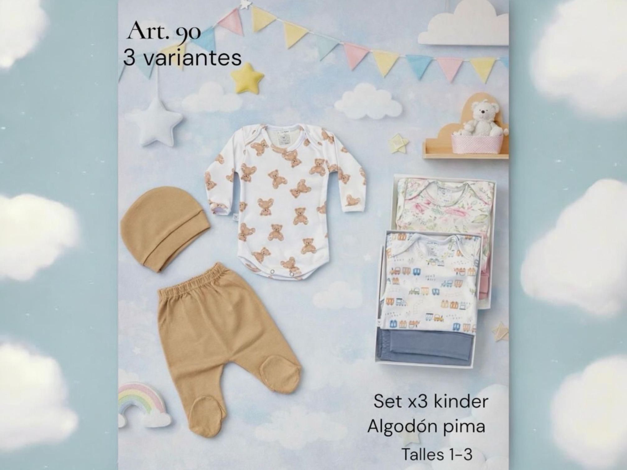 Set en caja 3 piezas con body “Algodon pima” Micky Baby T.(1 al 3) Art.90