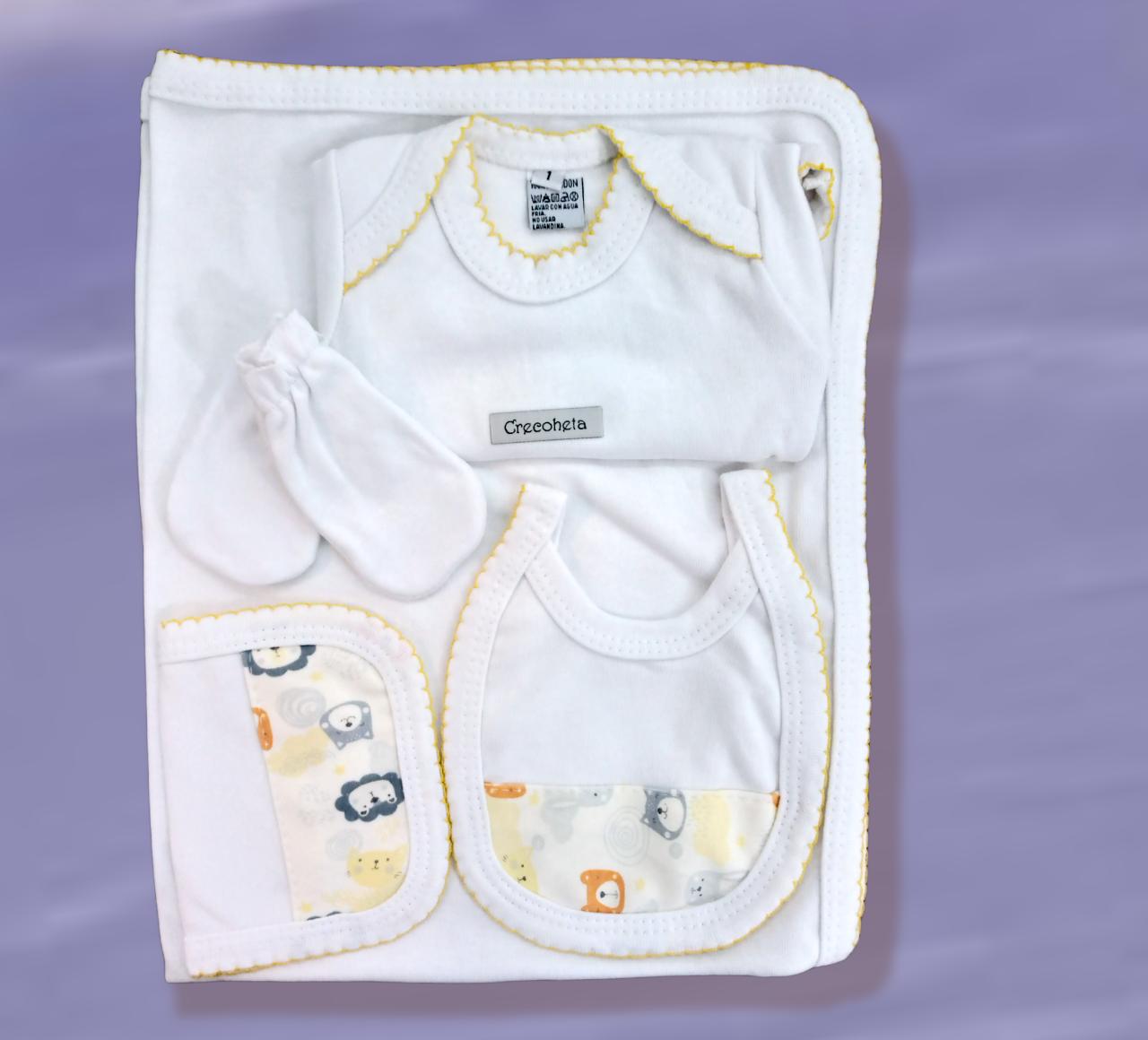 Set x5 (Manta, babita, babero, body y manopla) Crecoheta